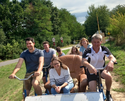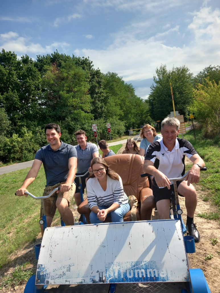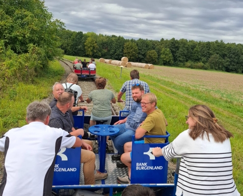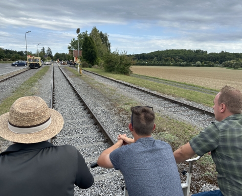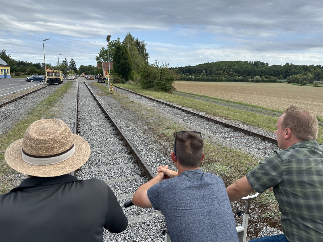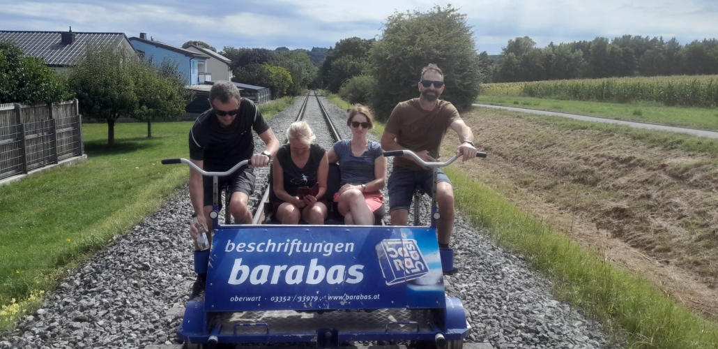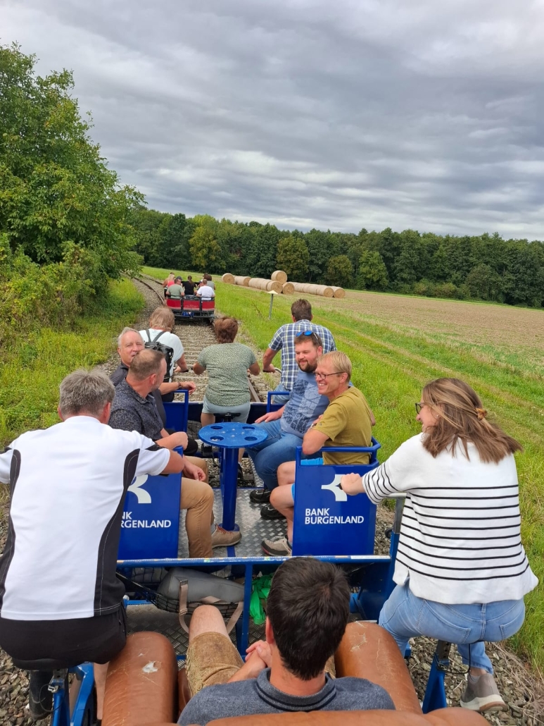 Aus der ganzen Steiermark versammelt ging es zu unserer ersten Station ins benachbarte Burgenland. Bei einer lustigen, für manche auch anstrengenden Draisinenfahrt konnten wir nicht nur unsere Kondition testen, sondern hatten auch viel Spaß beim Tritt in die Pedale.
